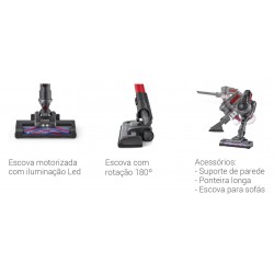 O aspirador vertical 2 em 1, 1642FL tem uma bateria de 22.2V, escova motorizada com iluminação Led, 35 de autonomia de aspiração e uma potência de sucção de 120W.