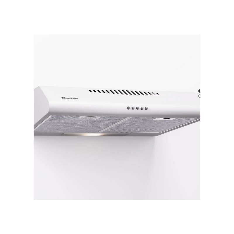 Exaustor convencional de 60cm Branco Comandos por botões Extracção máxima 240 m3/h Lâmpadas de LED Filtro de alumínio lavável Classe energética D