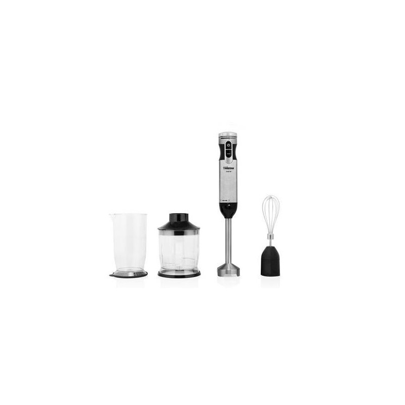 Luxuosa Varinha com motor DC de 1000 W. Com forte pé e lâminas em aço inoxidável, controle de velocidade, função turbo e um copo de medição de 700ml, batedor e picadora. Perfeito para batidos e sopas!