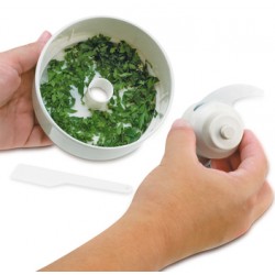 Ideal para picar e cortar facilmente todos os tipos de ingredientes: cebola, alho, ervas, nozes, avelãs, queijo e vegetais.